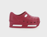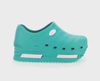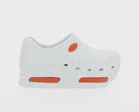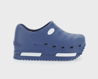 E' una calzatura sanitaria innovativa con una suola di alto spessore, che mantiene tutte le caratteristiche per essere estremamente comoda, traspirante e antiscivolo. Soletta estraibile e traspirante per una maggiore igiene. Soletta antiurto. Tomaia con disegno in rilievo. Logo in rilievo a contrasto. Presenta dettaglio laterale con stampa a pressione in rilievo. Suola 6 cm. Tomaia, interno e suola in gomma.